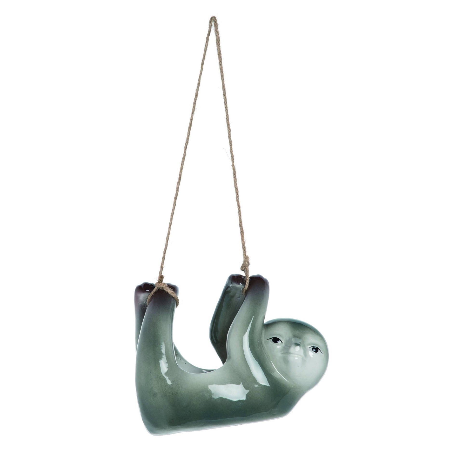 This fun piece is sure to bring some added flair to your spring and summer seasons. Made of ceramic, this hanging sloth planter is the perfect addition to your home assortment. This item's dimensions are: 6.3" x 4.33" x 4.33".