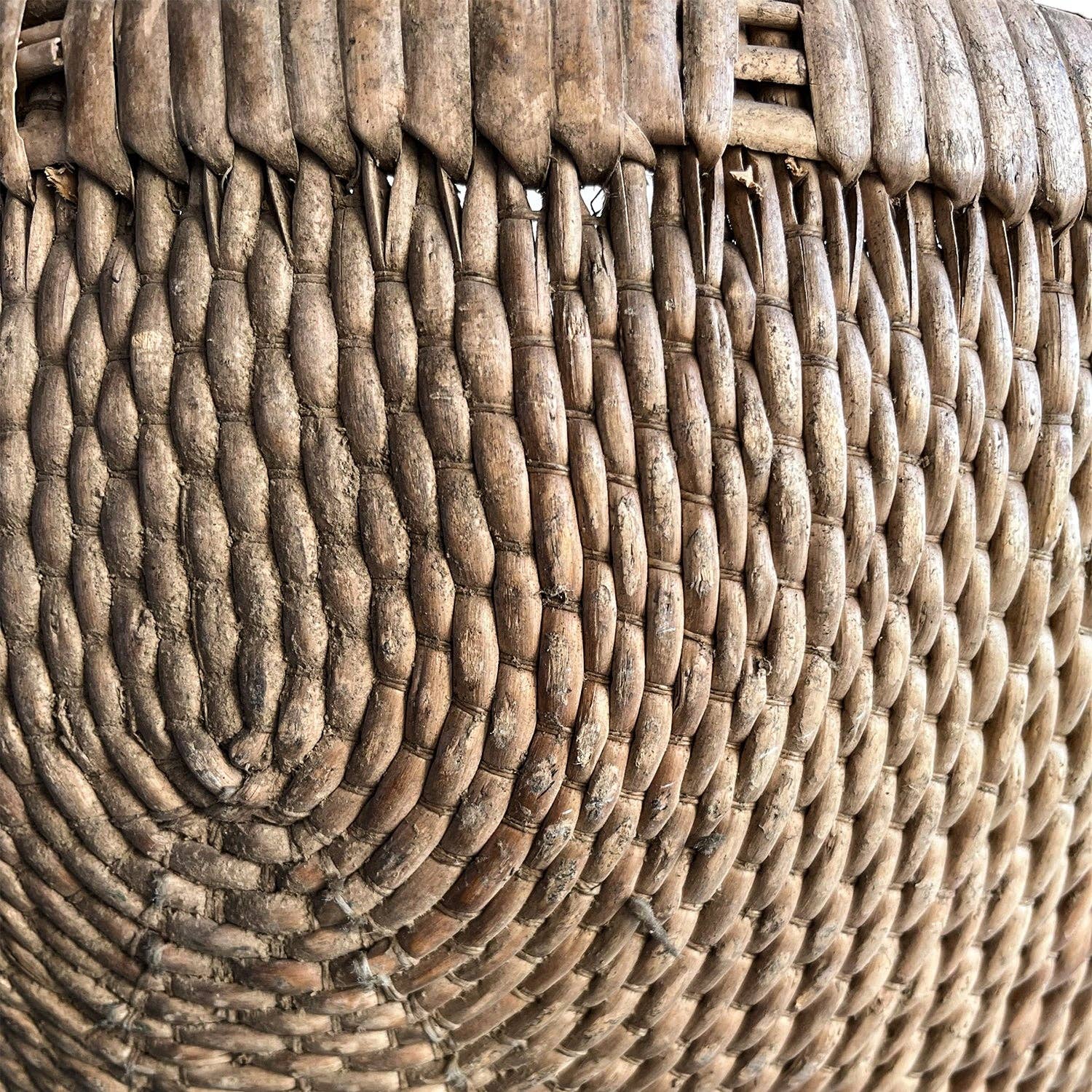 Our vintage collection of willow Round Handle Baskets was made in the Qingdao region of China. This traditional fishing port city along the Yellow Sea has grown into a modern metropolis, but the Round Handle Basket made from artisan hands speaks to the traditions of the city's history. No two Round Handle Baskets are alike. Size and condition vary. This is a vintage item. Size and condition will vary. Approx. 21" x 18"